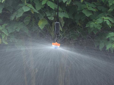 微喷是利用折射式,施转式成辐射式微型喷头将水喷洒到作物枝叶等区域的灌水形式。微喷的工作压力低,流量小,既可以增加土壤水分,又能提高空气湿度,起到调节局部小气候的功效,应用面十分广泛。另外,还可以借助部分微喷头的超强雾化功能,用于扦插育苗、饲养场降温等场所。
